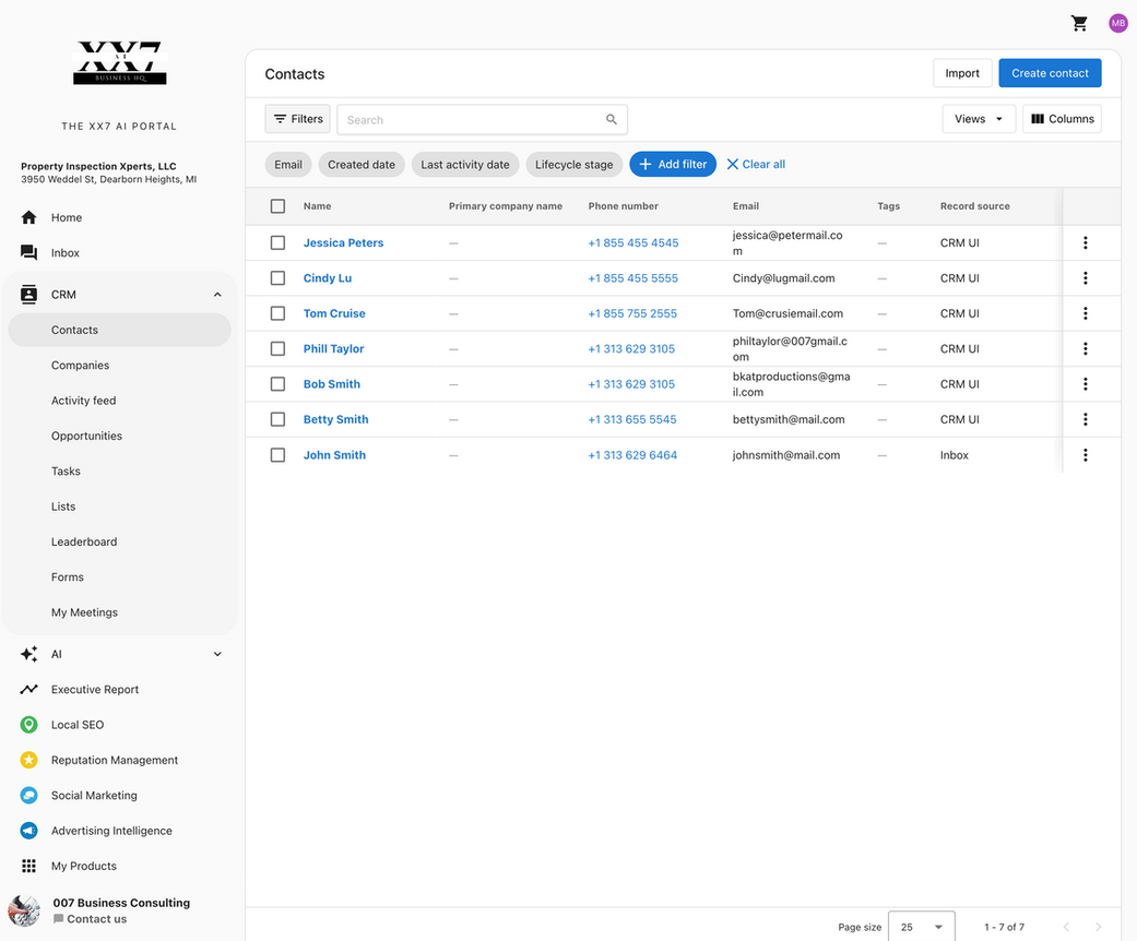 Welcome to The Platform—your command center for business domination. The XX7 AI Portal integrates your entire digital ecosystem into one sleek, mission-ready interface. From CRM and contact management to campaign automation, inbox messaging, social media control, reputation defense, and ad analytics—everything operates under one roof. No silos. No guesswork. Just elite precision and 24/7 AI agents executing your growth strategy.